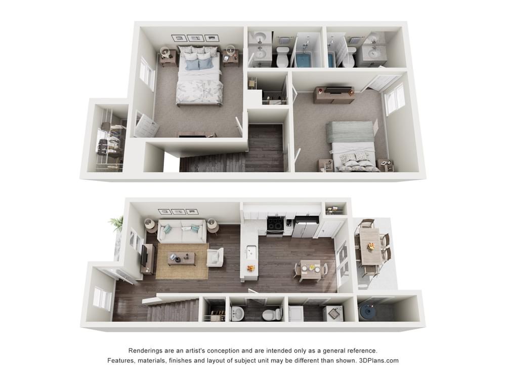 Unit Type2 Bed / 2.5 BathFloor Area1,033 sq. ft.Available02/16/2026Starting at$1,650 / mo